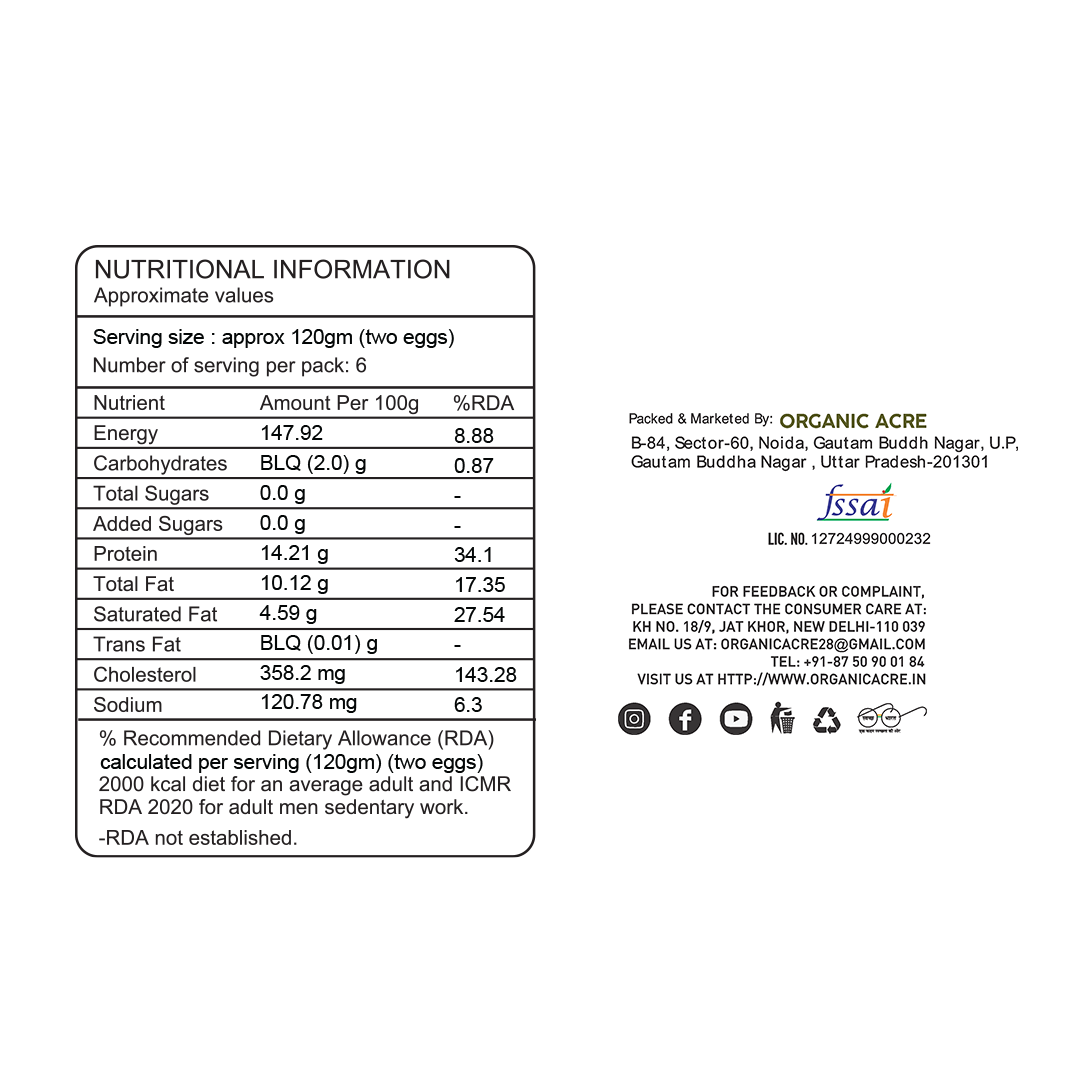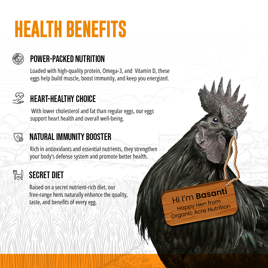 Authentic Desi Kadak Nath eggs sourced from free-range hens fed on organic grain, completely free from antibiotics and hormones. This 6-piece pack delivers nutrient-dense eggs with rich, distinctive flavor characteristic of heritage breeds. Ideal for discerning customers who prioritize animal welfare and clean, chemical-free nutrition for their families.
